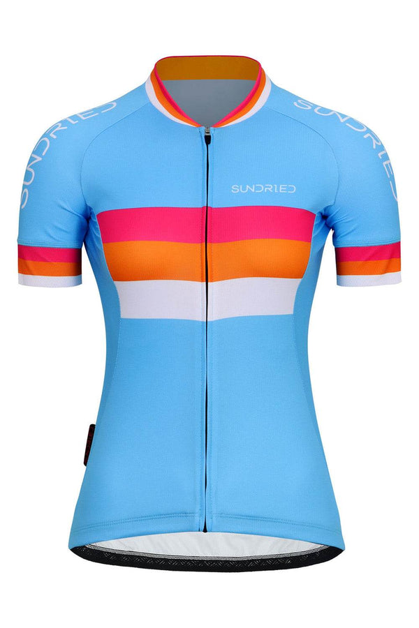Sundried Sky Stripe Women's Short Sleeve Cycle JerseySundried's Sky Stripe Jersey pairs advanced technical capabilities with classic styling, creating the perfect jersey for beginners and professional athletes alike. Crafted with lightweight stretch fabrics this jersey is soft to the touch and super streamlined Featuring 3 rear pockets so that you can store valuables and fuel supplies Reflective detailing...